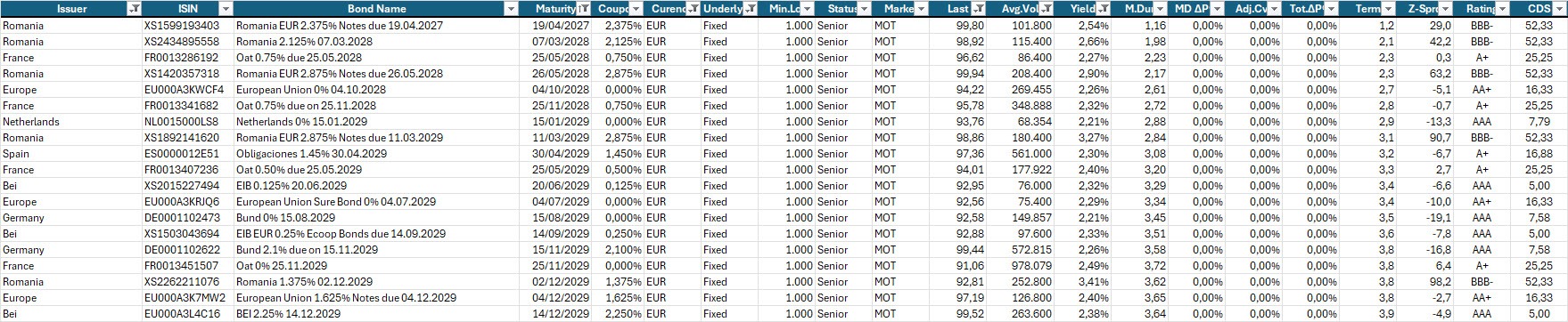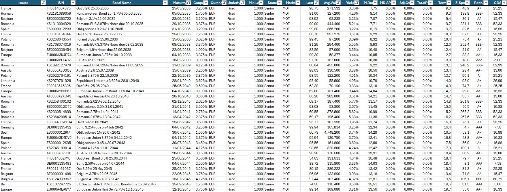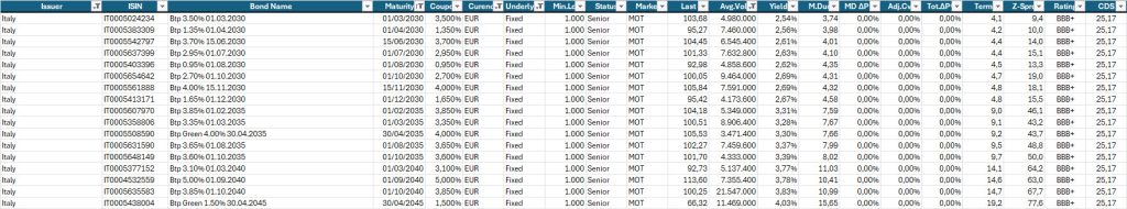 Passiamo quindi alla selezione dei bond coerente con questa architettura. Qui sotto, la consueta selezione di obbligazioni a titolo di esempio.