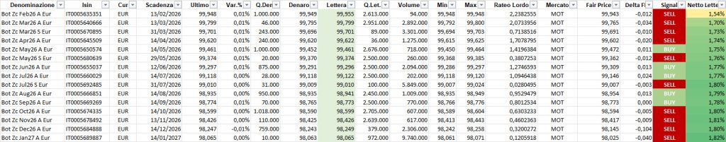 Focus sui BOT, con evidenza dei più interessanti poiché sottovalutati in termini relativi in rapporto al prezzo teorico.