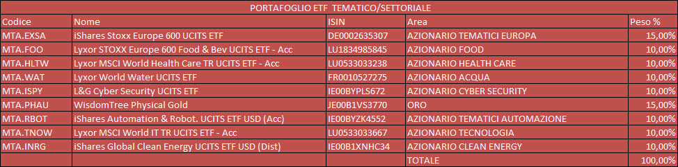 A partire da questa sera i portafogli ETF, così come i trading system ETF e Azioni Italia, verranno aggiornati al venerdì sera o comunque in anticipo rispetto all’apertura di lunedì. La data di aggiornamento comparirà direttamente nel titolo del portafoglio stesso.