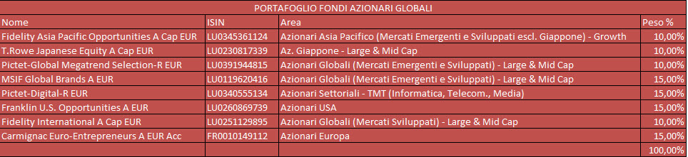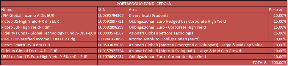 RendimentoFondi si rinnova sempre rimanendo al passo con i tempi e ascoltando le esigenze dei suoi lettori. Abbiamo colto l’occasione di questo momento nel quale molti portafogli sono scarichi per rivedere i pesi dei componenti. Nessun cambiamento radicale, giusto piccoli aggiustamenti.
