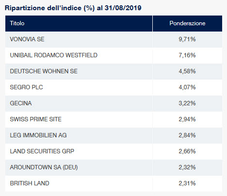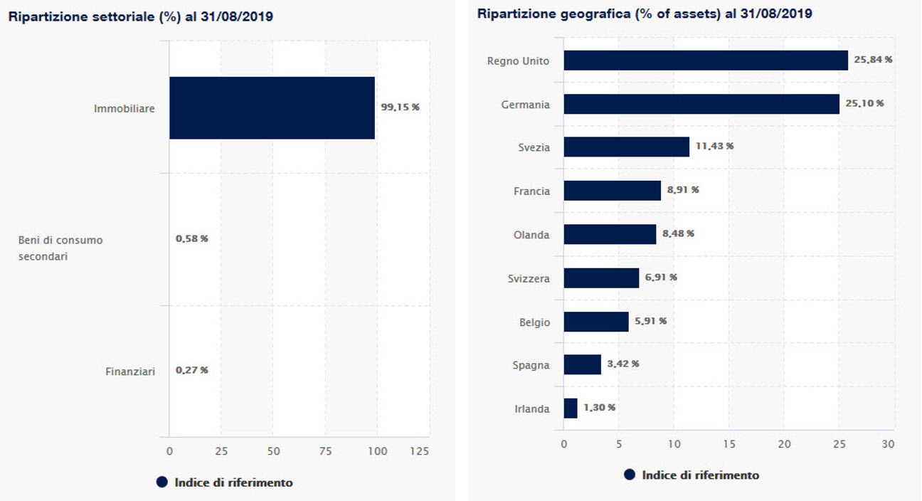 L’ETF Amundi Ftse Epra Eur Real Est LU1681039480 mira a replicare il rendimento dell’Indice FTSE EPRA/NAREIT Developed Europe, che è un indice azionario composto dai principali titoli quotati del settore immobiliare e da REIT (Real Estate Investment Trust) negoziati sui principali mercati azionari dei paesi europei sviluppati. L’esposizione del comparto all’Indice avviene tramite metodologia di replica indiretta, cioè il comparto investe in un total return swap che genera il rendimento dell’Indice a fronte del rendimento delle attività detenute.