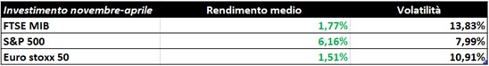 In altri termini, seguendo il motto stagionale ed investendo i nostri risparmi solo nel semestre da novembre ad aprile … Quanto avrebbe reso la strategia “Sell in May and go away”?