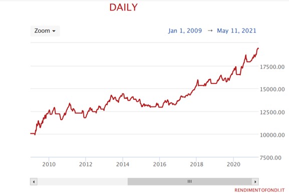 All’11 maggio 2021 il portafoglio avrebbe un valore di circa 19.300 € (holding period return del +93%) a fronte di una volatilità molto contenuta.