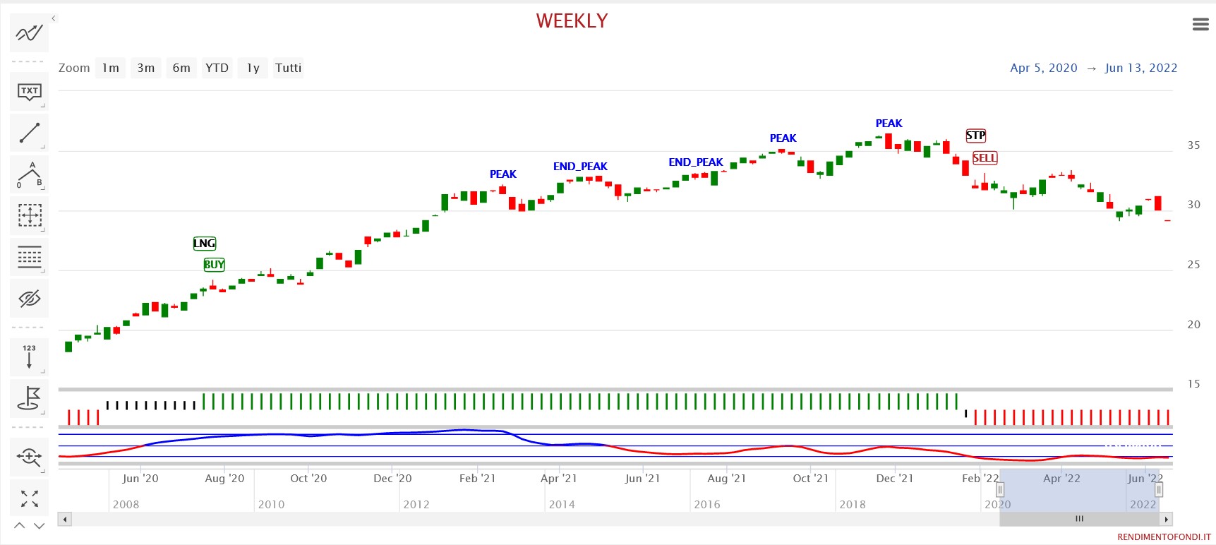 Va sicuramente rimarcato come tutti questi fondi comuni di investimento ESG abbiano avuto un segnale di SELL di Trendycator ben prima del recente crollo dei mercati.