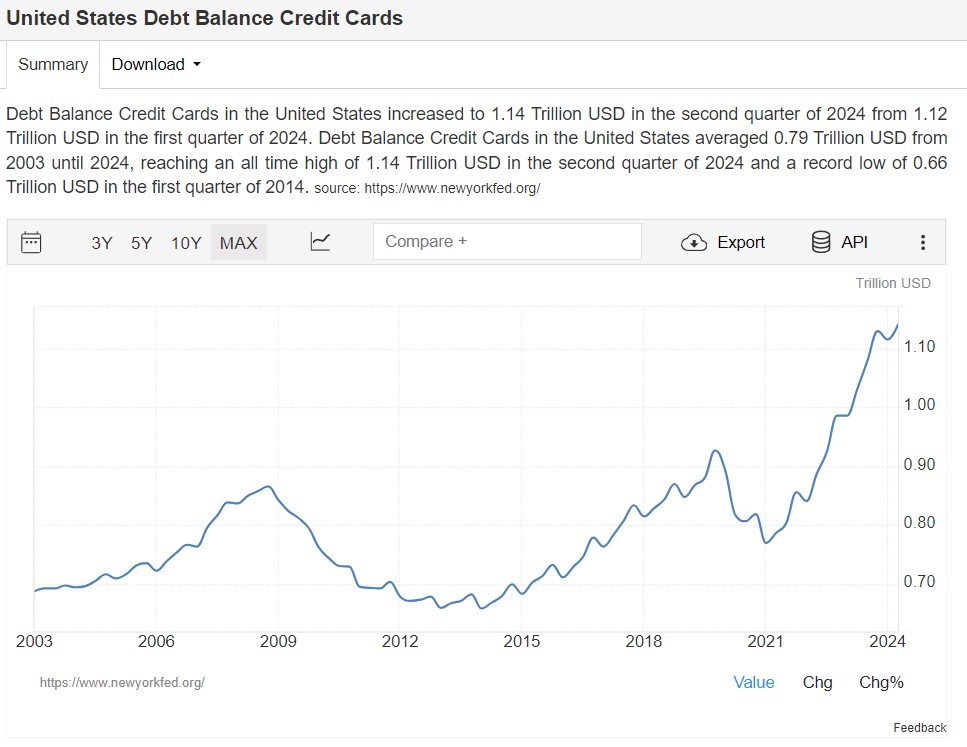 La salita dell’indebitamento delle carte di credito americane sfriora l’indecenza e il taglio dei tassi non potrà far altro che alimentare questa bolla.