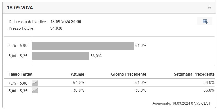 Link a forecast: https://it.investing.com/central-banks/fed-rate-monitor